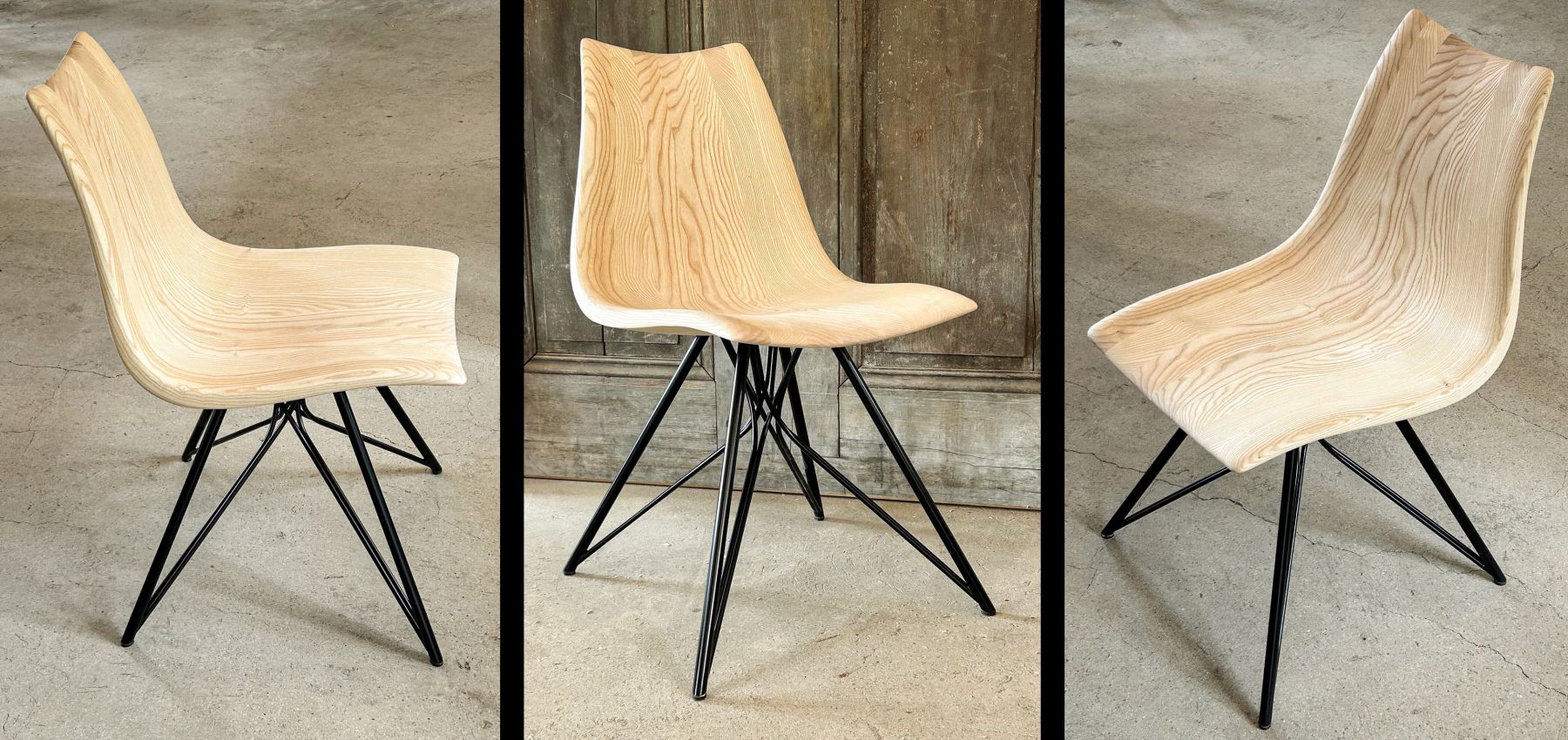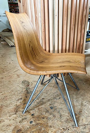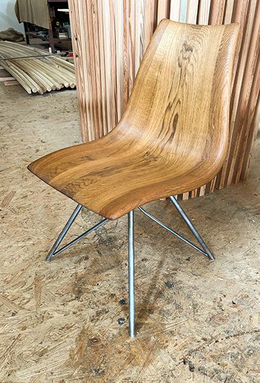 The HARMONICA shell chair is part of the premium furniture series HARMONICA, our bestseller. You can match the material of the wooden chair to your individual HARMONICA curved bench.