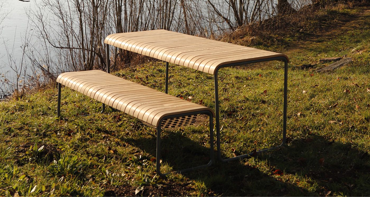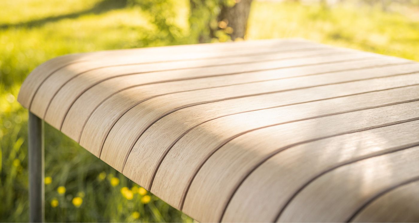 Unsere LOLA Bugholz-Tisch-Bank-Kombination ist ein echter Wandlungskünstler. Selbst auf kleinen Balkonen findet LOLA Platz, zum Beispiel in der Version mit kompakten Hockern. Genauso gekonnt fügt sich LOLA in Freiform über weite Strecken in grosszügige Parklandschaften ein.