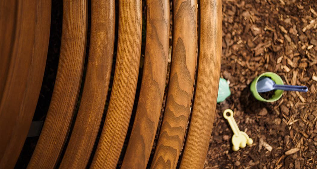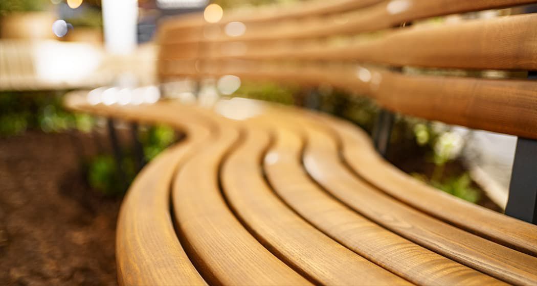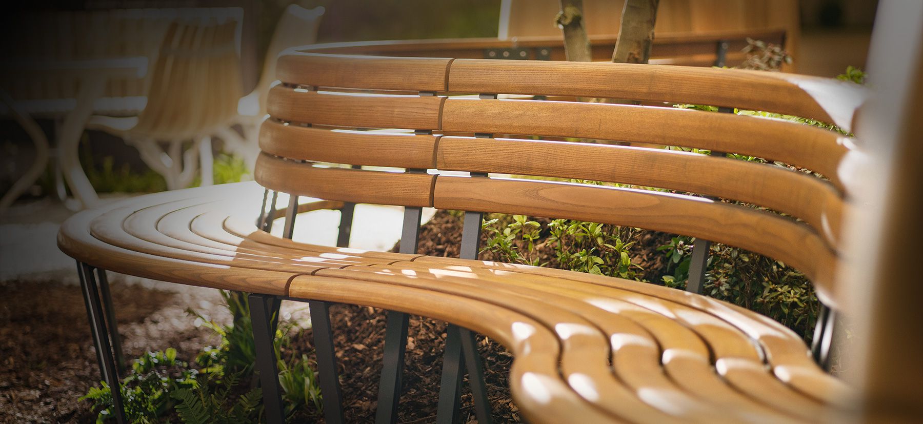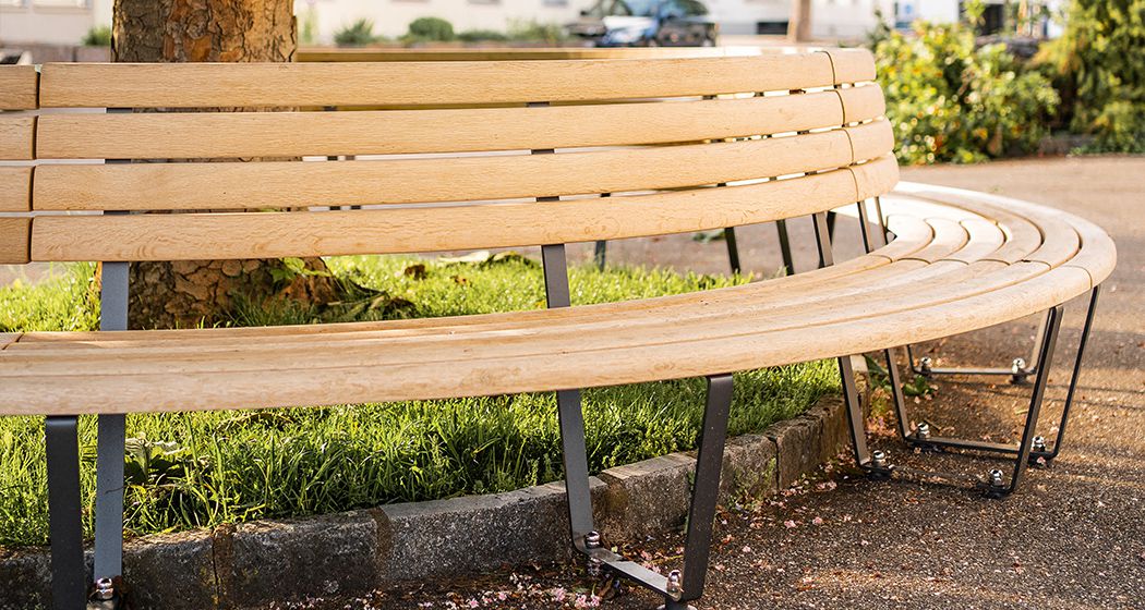 The LEUGGERN wooden bench is used mainly as public furniture. In towns and cities, it is a real highlight in parks and other public spaces, since a curved timber bench stands out with its distinctive form and naturally comfortable seating.