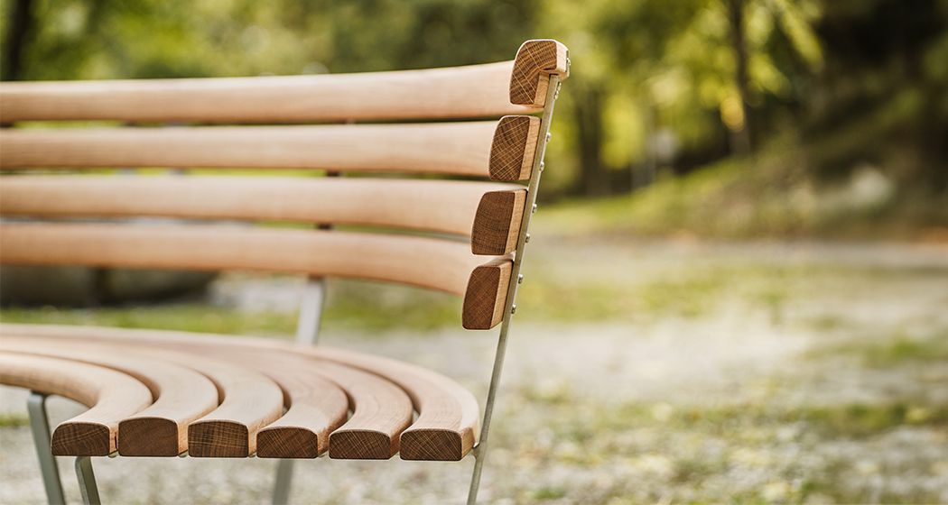 For our solid-wood benches, we only use local timber from the region – in most cases even from neighbouring forests. We attach particular importance to longevity and sustainability. That is why our weather-resistant outdoor benches are made in Switzerland – by hand in our wood-bending workshop. This ensures the final product is 100% local, from the design to the material to the production.